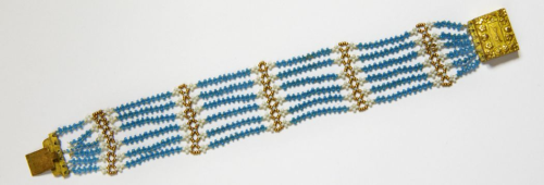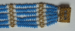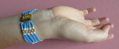 Do wykonania bransoletki potrzebne są najdrobniejsze koraliki TOHO w rozmiarze 15/o, odpowiednie do nich igły, co najmniej dwie - w najmniejszym możliwym rozmiarze, specjalne do beadingu i nitka - też specjalna do beadingu, biała. Kupiłam igły miękkie i namęczyłam się z nimi, nawlekając ten drobiazg - zapytajcie w sklepie, jaką igłę wybrać. Może kupicie coś lepszego. Nitka Nymo biała - świetna. Zapięcie kupiłam na Allegro. Niestety nie wygląda zbyt solidnie, może znajdziecie coś lepszego.