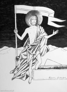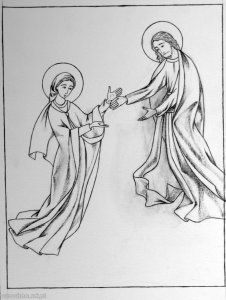 Technika: rysunek na papierze. Wymiary: 31 x 41 cm.